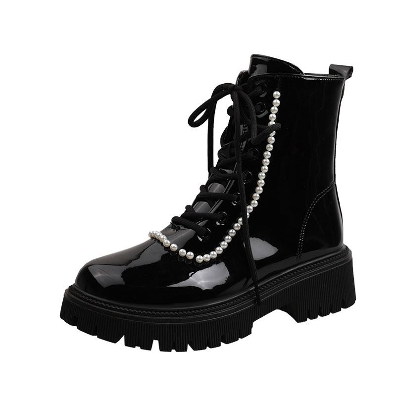 ショートブーツスプリングオータムパールサイドジッパースタイル 靴 シューズ 春物 秋物 真珠 フェイクシューズ13985381892