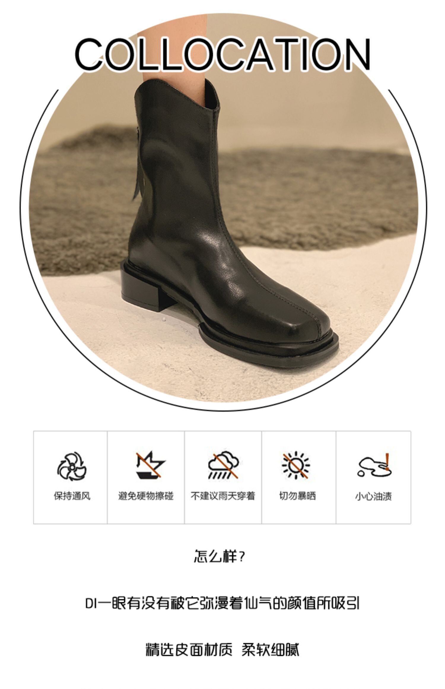 ベージュブーツオータムレッドジッパー薄手 靴 シューズ 秋物 スクウェア フェイクシューズ51606290111