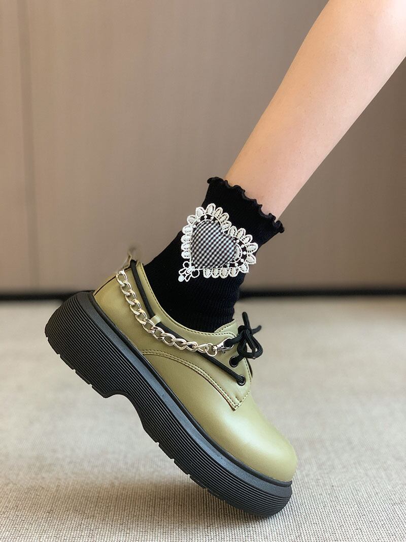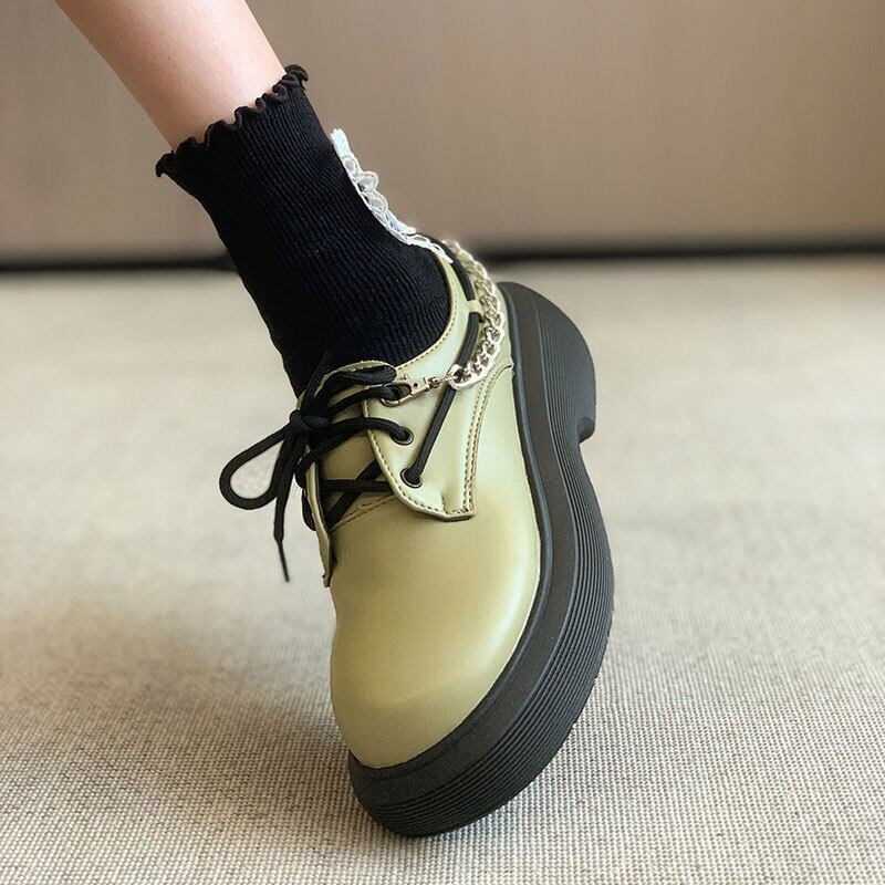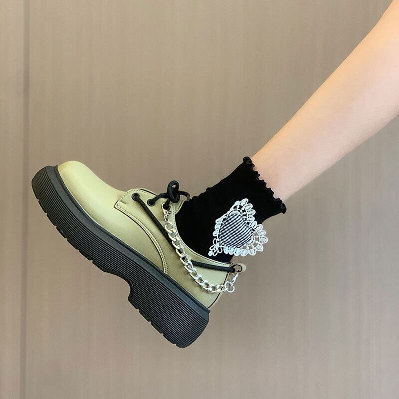 スタイルシングルオータムチェーン スタンダードレザー 靴 シューズ レトロ 秋物 フェイクシューズ78679914678