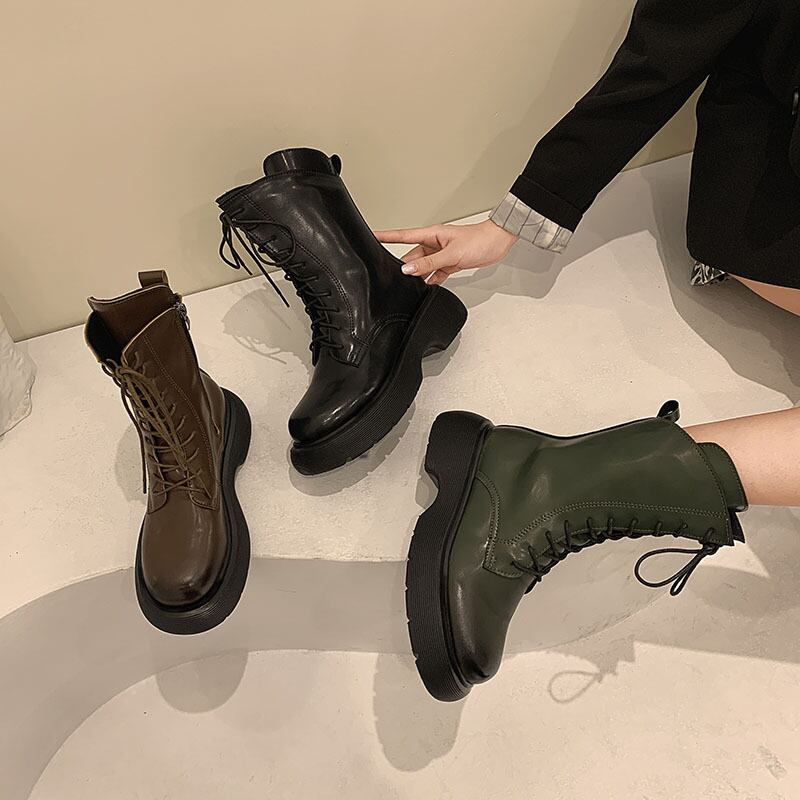 ブーツオータム薄手レッドスタンダードショート レトロ レース 靴 シューズ 秋物 レースアップ フェイクシューズ782757931