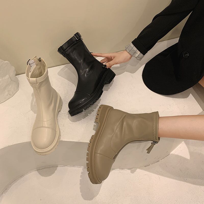 スタイルショートブーツオータムベルト バックル薄手 靴 シューズ 秋物 ハーネス フェイクシューズ33564081050
